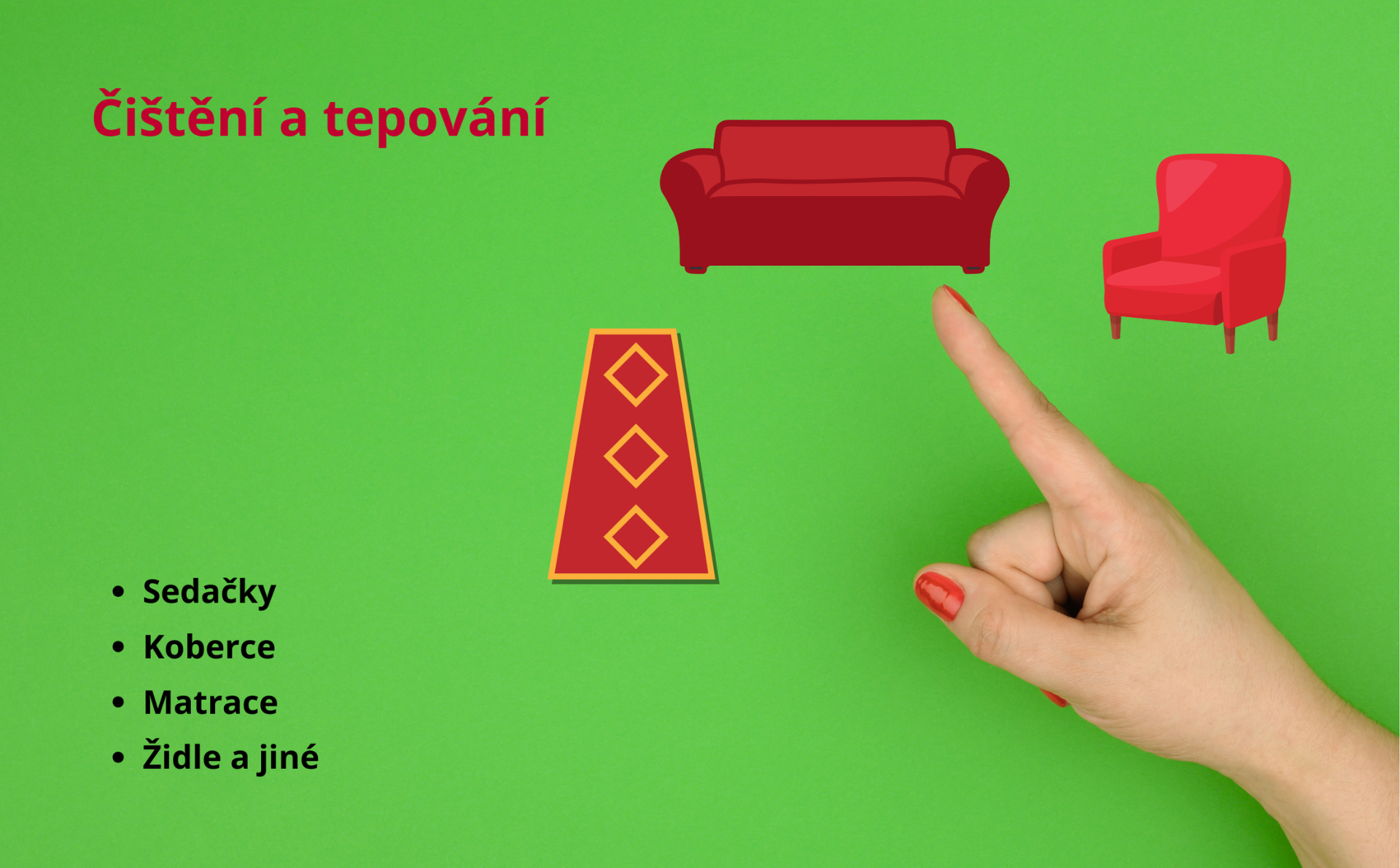 Tepování koberců, sedaček, pohovek, křesel, židlí a také matrací. Každý kousek ve Vaší domácnosti si zaslouží pozornost a péči.